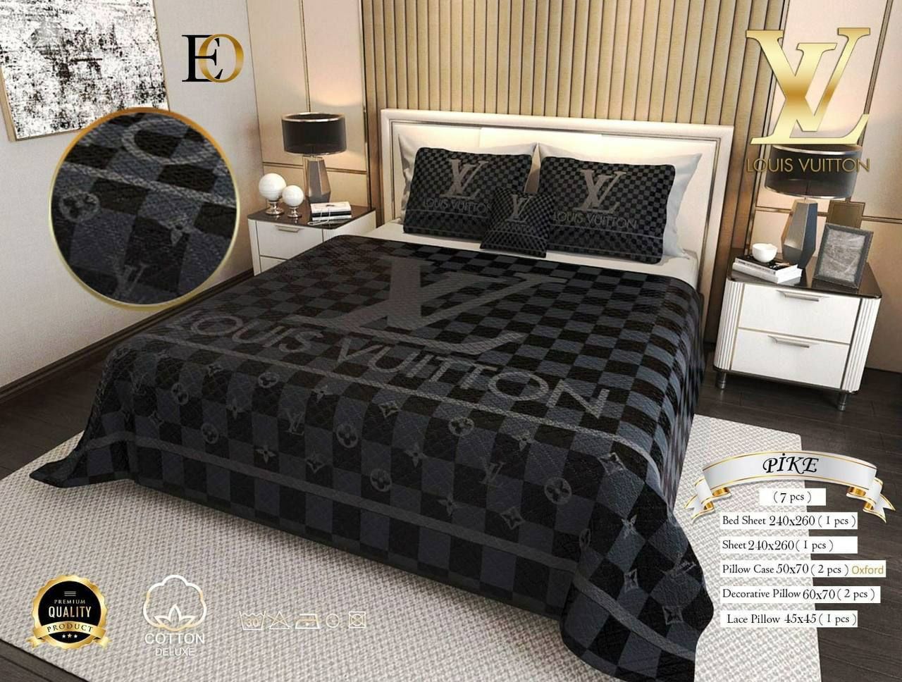 BLACK GRAY LV LOUIS VUITTON BEDDING 7-PIECE